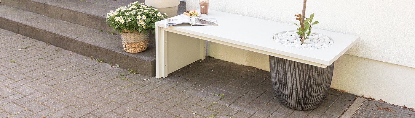 Baue Dir Deine Baumbank aus Holz mit integriertem Blumentopf einfach selbst. Der Hingucker in jedem Garten.