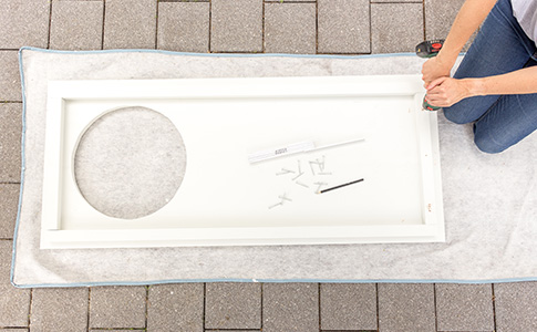 Verschraube zunächst die Leisten mit den Konstruktionsschrauben.
