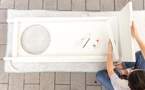 6. Bohre ein Loch für das Sägeblatt an die Kreismarkierung und säge den Kreis aus.