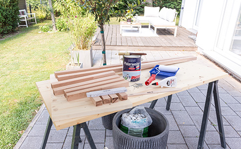 1. Nimm eine Holzleiste, z.B. einen Umrührstab von SCHÖNER WOHNEN-Farbe