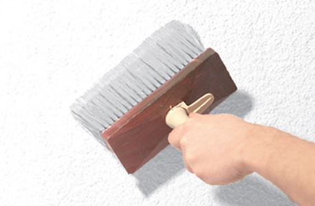 Saugfähigkeitstest: Trage mit einem nassen Schwamm Wasser auf die Fassade auf. Wenn das Wasser schnell einzieht, sollte die Oberfläche vor dem Anstrich unbedingt grundiert werden.