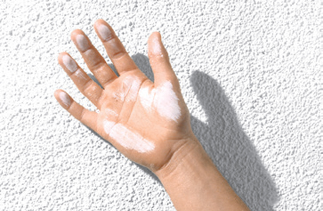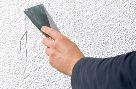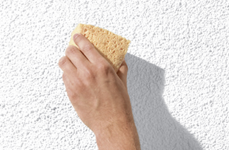 Abriebtest: Reiben mit der Handinnenfläche über die Fassade. Bildet sich ein weißer, mehlartiger Abrieb, benötigt die Fassade eine erneute gründliche Reinigung und anschließend eine Grundierung.