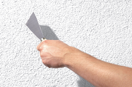 Kratztest: Kratze mit einem kantigen Gegenstand und leichtem Druck über die Fassade. Löst sich der Altanstrich oder platzt Putz ab, muss die Beschichtung an der Stelle entfernt werden.