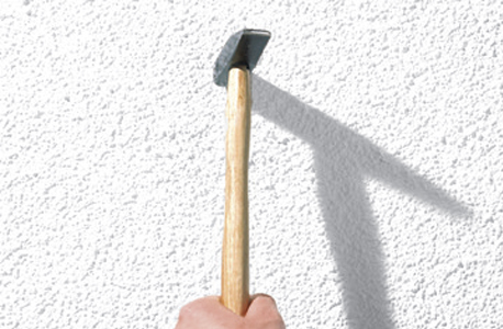 Klopftest: Suche nach Hohlräumen, indem Du in regelmäßigen Abständen vorsichtig die Fassade mit dem Hammer abklopfen. Hohlräume müssen vollständig geöffnet, gesäubert und neu verputzt werden.