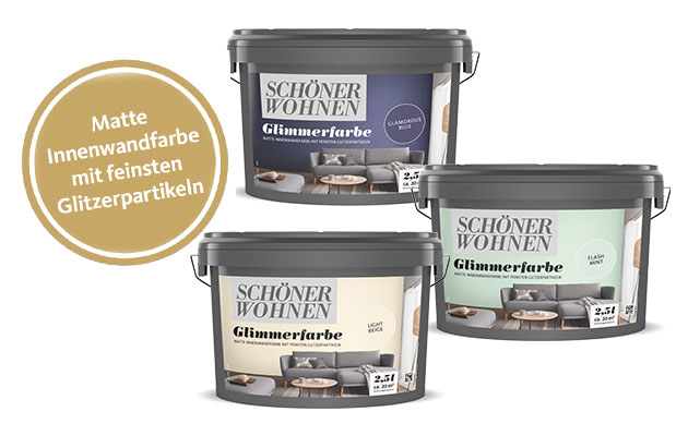 Die feinen Glitzerpartikel in unserer neuen SCHÖNER WOHNEN Trendstruktur Glimmerfarbe machen Ihre Wände zu einem Hingucker, der nicht nur Sie, sondern auch Ihren Besuch begeistern wird.