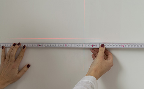 Bringe nun zuerst den Holzleistenrahmen, also die äußersten Senkrechten und Waagerechten an deine Wand und danach alle Senkrechten. Bringe nun zuerst den Holzleistenrahmen, also die äußersten Senkrechten und Waagerechten an deine Wand und danach alle Senkrechten.