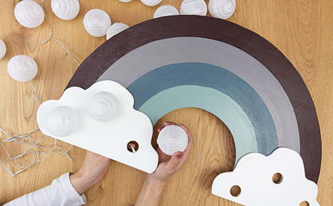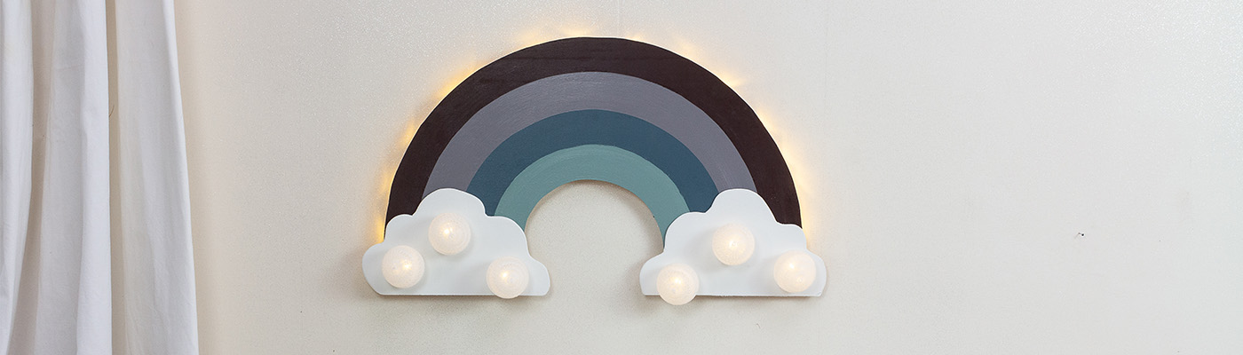 Die verspielte Regenbogenlampe ist genau das trendige Dekoelement, das ins jede Kinderzimmer passt und dort noch mehr Gemütlichkeit hinein zaubert.
