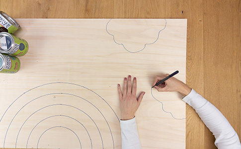 Säge den inneren und äußeren Halbkreis und die Wolken mit der Stichsäge aus.
