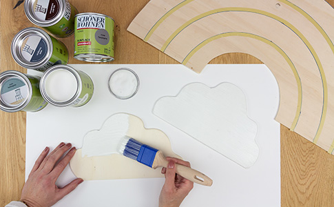 Während der Lack trocknet, kannst du die Wolken weiß lackieren.