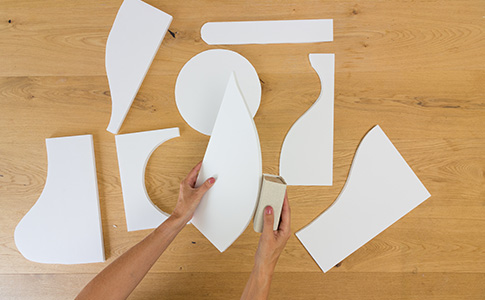 Um gerade Kanten zu erhalten, kannst Du Deine ausgeschnittenen Formen mit dem Schleifpapier abschleifen.
