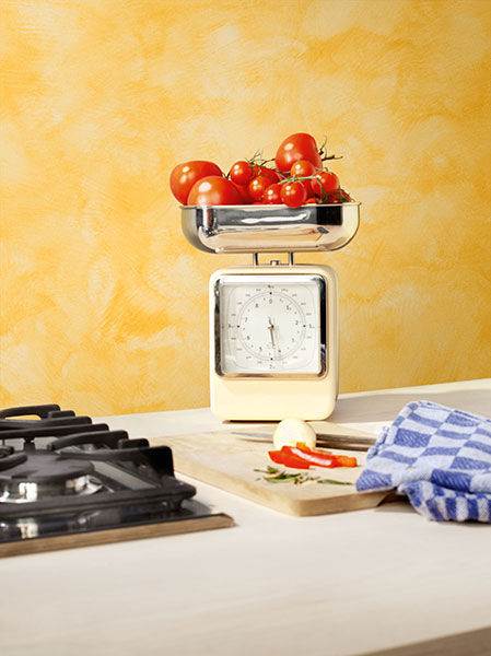 Rühre die Trendfarbe vor der Verarbeitung gut auf und trage diese gleichmäßig mit einem Kurzflorroller auf. Trage die Trendfarbe zuerst an Ecken und Kanten auf. Streiche anschließend mit dem Kurzflorroller 2–3 Bahnen und verteile die Farbe gleichmäßig im Kreuzgang. Abschließend die Fläche ohne Druck senkrecht noch einmal abrollen. Zusammenhängende Flächen sollten immer „nass in nass“ ohne Unterbrechung beschichtet werden, um sichtbare Ansätze zu vermeiden. Der Untergrund muss fest, sauber, trocken und tragfähig sein. Lasse die Farbe ca. 6 Stunden trocknen.