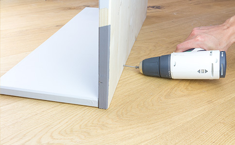 An den zwei kleineren Platten wir an der längeren Kante sowie an der großen Platte die passenden Bohrlöcher eingezeichnet, die später zur Befestigung dienen sollen.