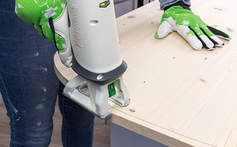 Danach können die eingezeichneten Sägelinien auf der großen Platte mithilfe einer Stichsäge und einem Kurvensägeblatt ausgesägt werden.