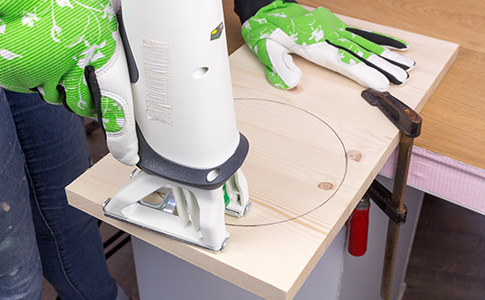 Im Anschluss kann ebenfalls mit der Stichsäge der eingezeichnete Kreis auf der kleineren Platte ausgesägt werden.