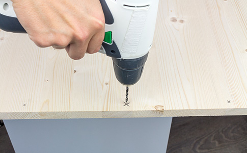 Die eingezeichneten Bohrlöcher werden im Anschluss mithilfe es Bohrers durchbohrt.