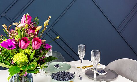 Mutig, ausdrucksstark und unverwechselbar – die Trendfarbe Blueberry von SCHÖNER WOHNEN-Farbe hat Moni und Steffi vom Party- und Homestyling-Blog…