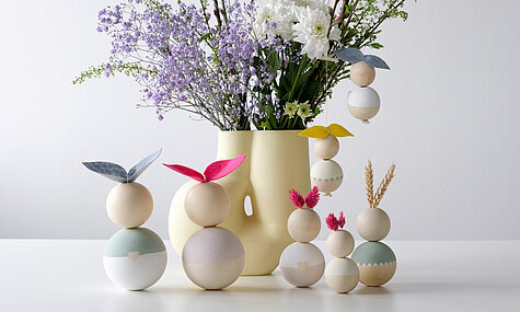 Wenn Du die Deko zum Osterfest selbst bastelst, kommst Du direkt in Frühlingslaune! Unsere süße kleine Hasenfamilie aus Holzkugeln sieht nicht nur auf…