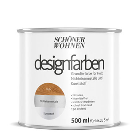 Um andere Materialien als die Wände mit Designfarbe streichen zu können, musst Du den Untergrund mit der Grundierfarbe vorbereiten. Sie ist besonders einfach zu verarbeiten und sorgt für die richtige Haftung der Designfarbe. So bekommen Elemente aus unterschiedlichen Materialien den gleichen Farbton und dazu ein einheitliches Oberflächenfinish ganz ohne Farb- oder Glanzunterschiede. Genau wie die Designfarben selbst ist die Grundierfarbe übrigens emissionsarm, lösemittel- und weichmacherfrei. Mit der Designfarben Grundierfarbe steht einem perfekten All-Over-Look also nichts mehr im Wege.