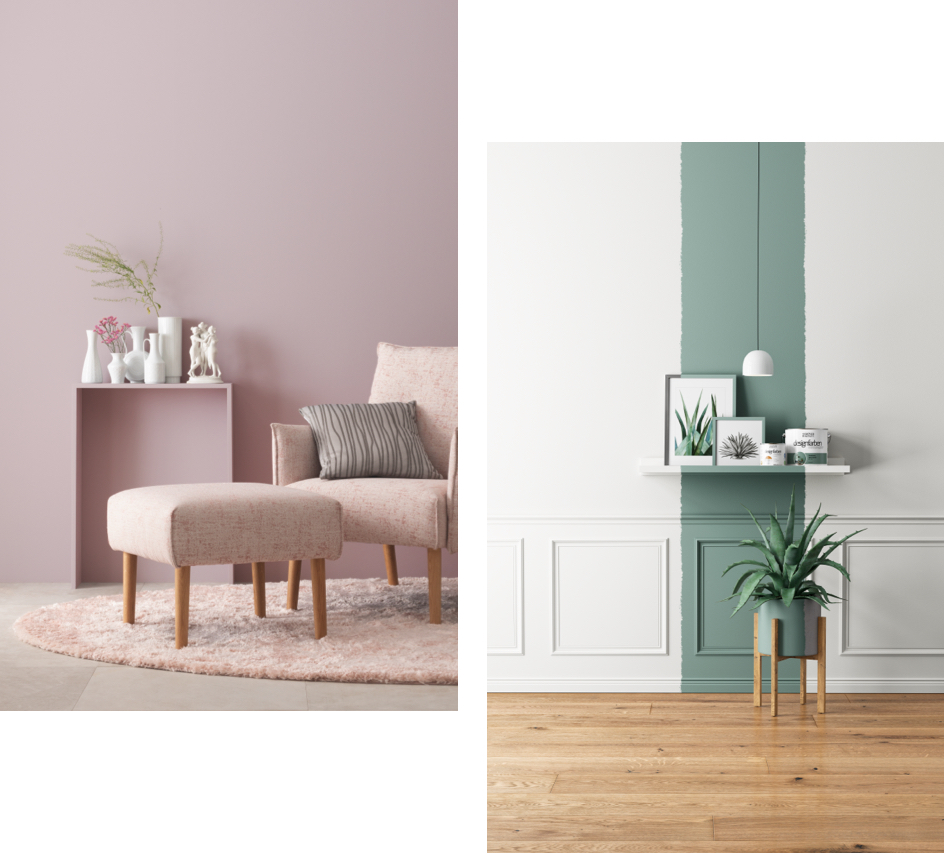Wie wäre es, wenn Deine Lieblingsdesignfarbe zu Hause den Ton angibt? Das geht mit dem All-Over-Look! Dafür streichst Du Wände, Fußleisten, Paneele und Zierelemente in derselben Farbe. Alles verschmilzt optisch zu einer Einheit. So inszenierst Du einen Raum auf atemberaubende Art und Weise.
