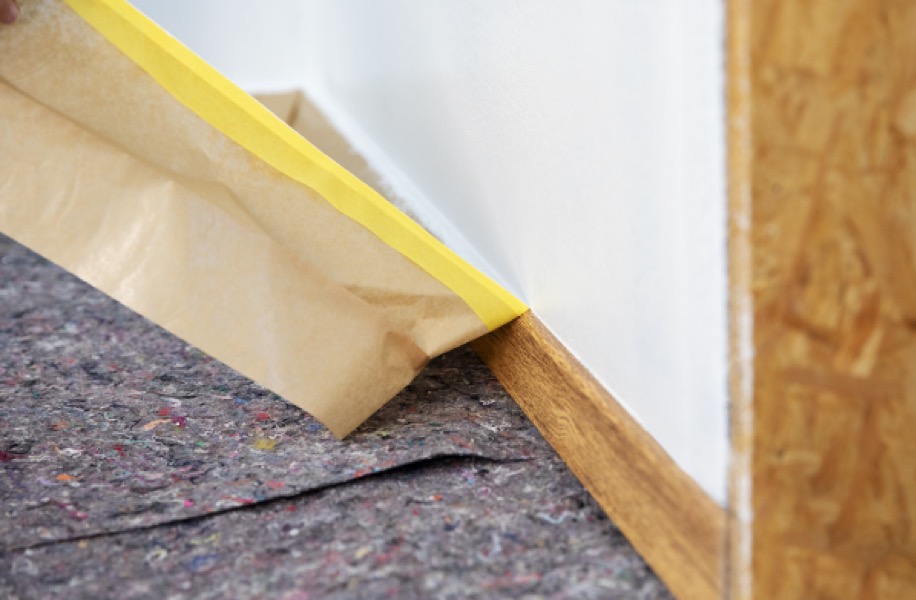 Bevor es losgeht, sollten Sie den Fußboden und alle Möbel in der Nähe mit Folie abdecken. Fußleisten, Fenster und Türen kleben Sie am besten mit Malerband ab. Steckdosen und Lichtschalter können Sie abmontieren, nachdem Sie den Strom abgeschaltet haben.