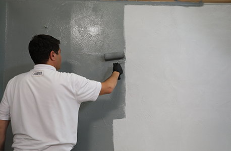 Dann wird die zweite Schicht Spachtel per Rolle aufgetragen. Mit der Kelle strukturierst Du schließlich die Betonoptik der Oberfläche und schaffst so das richtige Loft-Feeling. Du entscheidest, ob die Fläche ganz glatt sein soll oder charakterstarke Unebenheiten und Lunker besitzt.