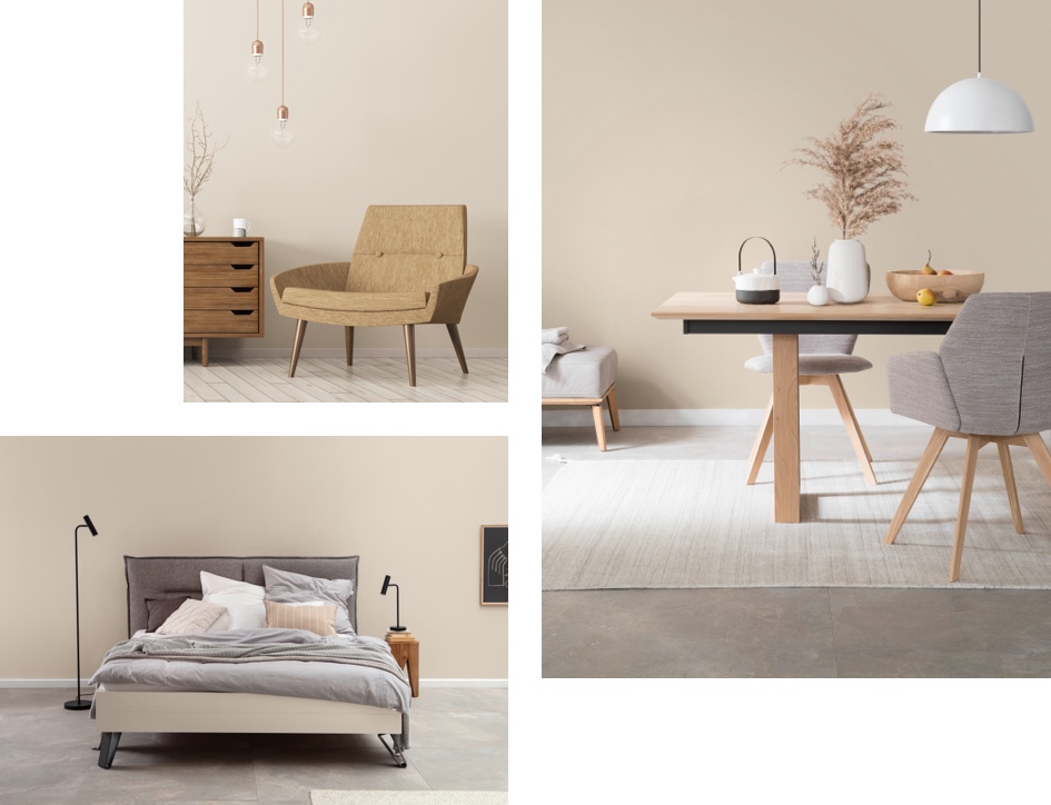 Mit Farben wie Cosy entsteht zu Hause eine warme Stimmung von ganz allein. Der Ton lässt Räume bei Tag und bei Nacht angenehm temperiert wirken. Dadurch strahlen sie eine freundliche Stimmung aus – sonnig, modern und voller Zuversicht. Gerade in unruhigen Zeiten bringen Naturtöne Verlässlichkeit und Behaglichkeit in die eigenen vier Wände.