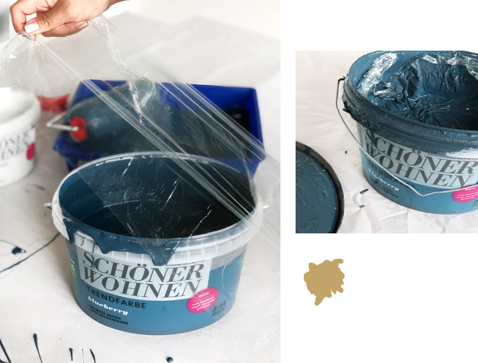 Ist nach dem Streichen noch Farbe übrig, verschließen Sie den Eimer am besten fest mit dem passenden Deckel. Je weniger Luft an die Farbe gelangt, desto besser. Falls Sie nicht genau wissen, wann Sie den Pinsel wieder schwingen, können Sie die Oberfläche der Farbe zusätzlich mit Folie abdecken, bevor Sie den Eimer zumachen.