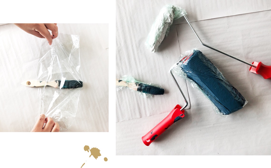 Unterbrechen Sie Ihre Arbeit dagegen nur für einige Stunden, wickeln Sie Pinsel und Rolle einfach luftdicht in Folie oder stecken Sie das Werkzeug in eine Plastiktüte, die Sie dann fest verschließen. So trocknet die Farbe nicht ein und Sie können jederzeit weiterstreichen.