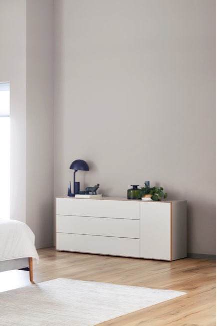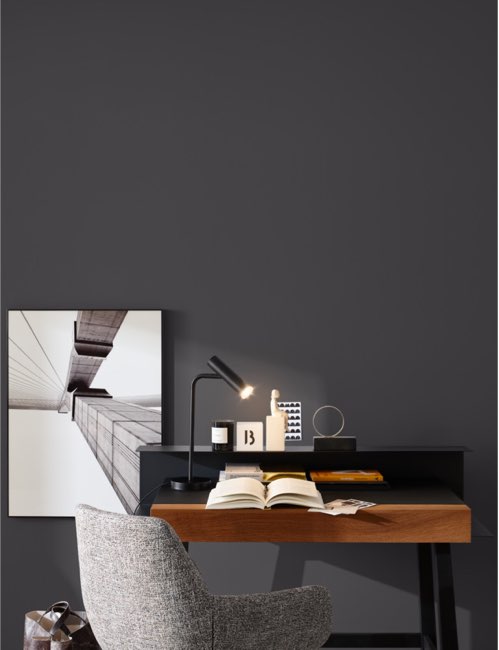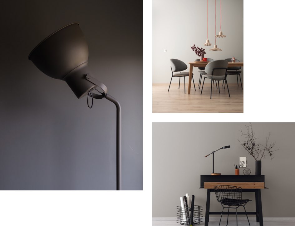 Die Grautöne von SCHÖNER WOHNEN-Farbe unterscheiden sich durch Anteile weiterer Farben wie Grün und Blau voneinander. Je mehr Schwarz ein Grauton enthält, desto geheimnisvoller wirkt er. Je mehr Weiß dem Grau beigemischt ist, desto energetischer erscheint der Ton. Wie hell oder dunkel ein bestimmtes Grau wahrgenommen wird, hängt jedoch auch von der Umgebung ab. Grenzt es an Weiß, erscheint es dunkler. Neben Schwarz beginnt das Grau zu leuchten.