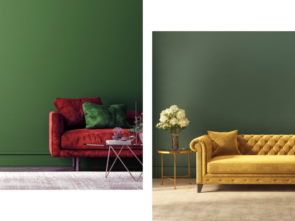 In Verbindung mit Beige- oder Brauntönen wirkt Grün besonders natürlich – eine Kombination, die für ein Gefühl von Geborgenheit sorgt.
