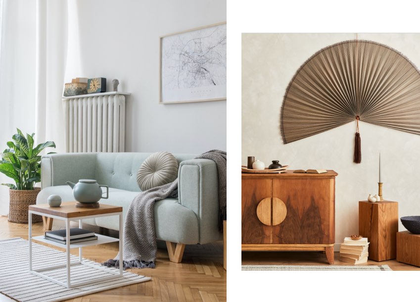 Japanisches und skandinavisches Design ergänzen sich wunderbar. Bei Japandi geht es um ein Gleichgewicht zwischen japanischer Zurückhaltung und nordischer Eleganz. Auf jeden Fall darfst Du natürlich auch mal mutige Farbakzente setzen, um Deine ganz persönliche Interpretation dieses Einrichtungstrends umzusetzen.