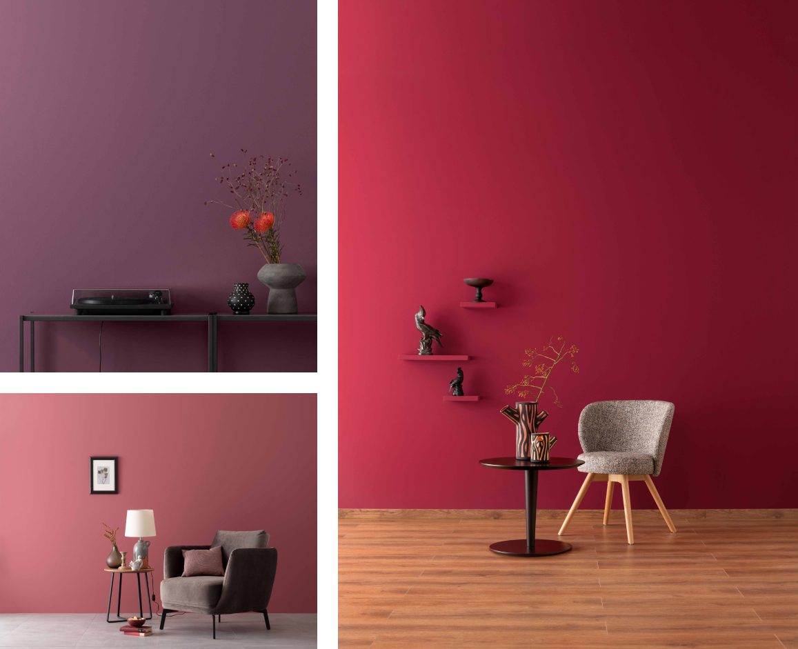 Rottöne, besonders die sonnigen, aber auch die erdigen Nuancen, werden häufig als warm empfunden und steigern so das subjektive Wohlbefinden. Entdecke die große Wandelbarkeit von Rot mit den verschiedenen Tönen unserer SCHÖNER WOHNEN Designfarben. Gefühlvolles Herzensrot zum Beispiel ist leidenschaftlich und selbstbewusst. Die Farbe strahlt vor Lebensenergie. Damit setzt Du besonders ausdrucksstarke Akzente. Englisches Rosenrot steckt voller blühender Schönheit und moderner Eleganz. Stilvolles Opalviolett ist magisch, betörend und wohltuend. Gerade der eher dunkle Charakter dieser Farbe unterstützt Dich dabei, Deine vier Wände behaglich einzurichten.