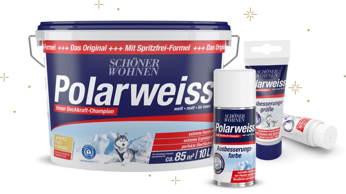 SCHÖNER WOHNEN Polarweiss liefert Dir als unser Deckkraft-Champion nicht nur ein deckendes Ergebnis mit nur einem Anstrich, sondern auch eine perfekte Oberfläche, an der Du lange Freude haben wirst. Doch mit der Zeit lassen sich kleine Alltagsspuren auf der Wandfläche oft nicht vermeiden. Die meisten kannst du auf der robusten Wandfarbe mit einem Tuch oder Schwamm vorsichtig wieder entfernen. Sollten sich aber auch mal hartnäckigere Spuren dazugesellt haben, empfehlen wir Dir das Polarweiss Ausbesserungsspray. Das weichmacher- und konservierungsmittelfreie Spray ist erhältlich im originalen Polarweiss-Farbton, was Spuren und Flecken auf Knopfdruck verschwinden lässt.