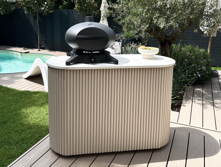 Mit einer kleinen Outdoor-Küche schaffst Du einen neuen Lieblingsplatz im Garten. Aneta hat dazu eine Konstruktion aus Holz gebaut, in der unter anderem die Gasflasche vom Grill verstaut werden kann. Die Arbeitsplatte aus Keramik bietet nicht nur Platz für den Gasgrill selbst, sondern auch für Teller, Gläser, Drinks und Snacks. Ohne den Grill reicht die Fläche sogar für ein kleines Buffet. Der Clou: Die Küche ist mobil und lässt sich auf Rollen schnell von einer Ecke zur anderen schieben – je nachdem, wo die letzten Sonnenstrahlen des Tages in den Garten fallen.