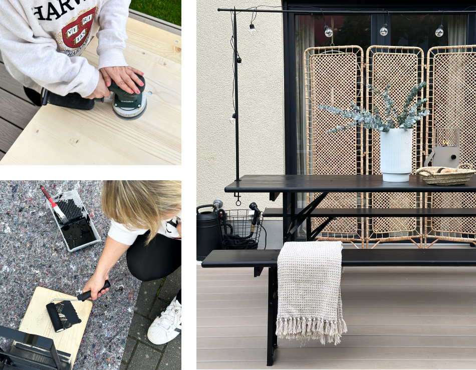 Ein weiteres besonderes Projekt von Aneta ist die angestrichene Bierzeltgarnitur. Hier hat die Influencerin aus Köln sich für einen Neuanstrich entschieden, der diesem eher rustikalen Outdoor-Möbelstück einen völlig neuen, modernen Look verleiht. Vor dem Lackieren solltest Du die Holzteile anschleifen und den Staub sorgfältig entfernen. Falls sich an den Metallteilen Rost zeigt oder der alte Lack abblättert, musst Du beides entfernen. Wir empfehlen Dir in diesem Fall vor dem Streichen eine Grundierung zu benutzen, zum Beispiel unsere Protect Grundierung für Eisenmetalle.