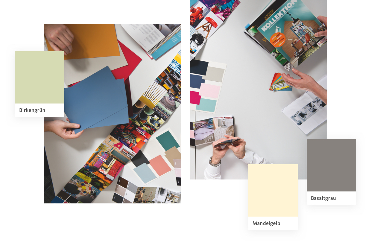 Ein Moodboard erstellst Du mit einfachsten Mitteln. Nimm Dir einfach ein großes Stück Karton oder Pappe. Außerdem brauchst Du Kleber, Zeitschriften und Magazine, Farb- und Stoffmuster und eventuell einen Farbdrucker, wenn Du Fundstücke aus dem Internet ausdrucken möchtest. Eva Brenner benutzt Moodboards auch fürs Brainstorming: „Am Anfang geht es darum, offen zu sein für alle möglichen Ideen. Zeitschriften, Magazine, Bücher, Malerei, Filme und Serien – im Prinzip kann bei mir alles eine Inspirationsquelle sein.“ Ein guter Anfang für Deine Suche sind auch die SCHÖNER WOHNEN-Farbe Wohnwelten.