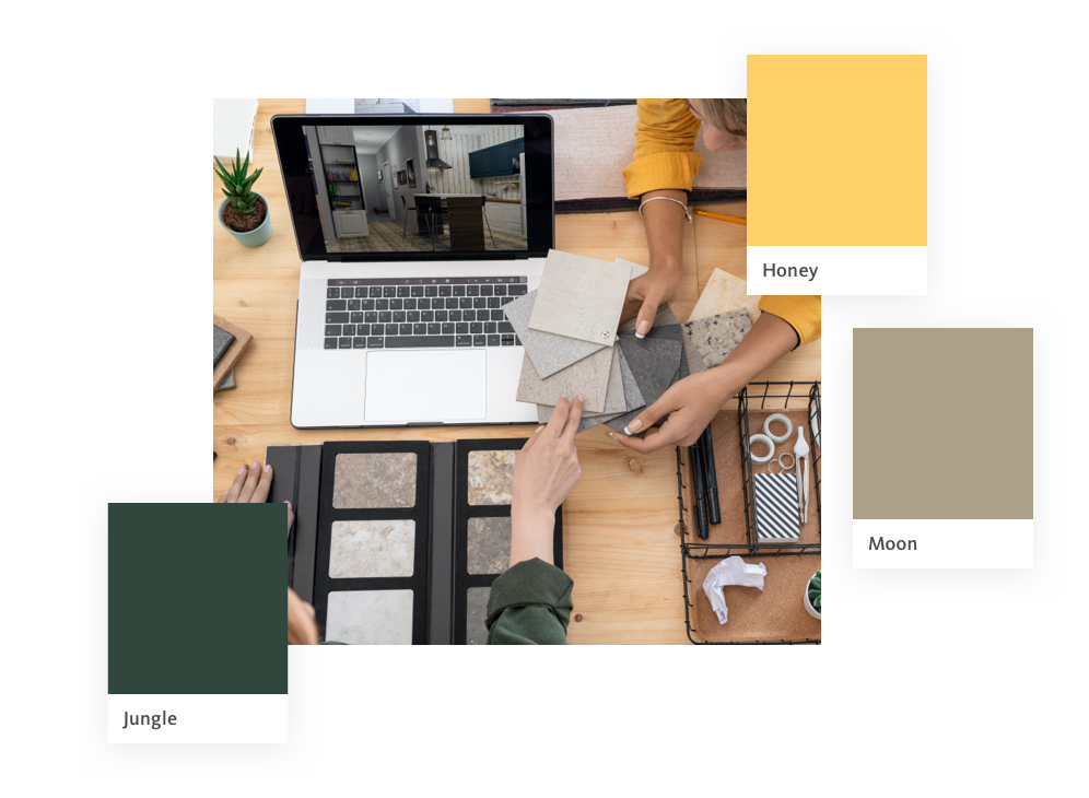 Ein rein digitales Moodboard ist schnell erstellt und leicht angepasst. Außerdem lässt es sich online mit Freunden teilen. Social Media hilft Dir, neue Bilder zu entdecken, die Du dann nach bestimmten Themenbereichen ordnen kannst. Der Vorteil: Du musst die Bilder nicht erst ausdrucken, um ein Moodboard zu erstellen. Geht es allerdings um die Farbauswahl, denk daran, dass durch die Einstellung Deines Monitors und Druckers Abweichungen zum Originalfarbton entstehen können. Wenn Du wirklich wissen willst, wie ein bestimmter Ton wirkt, dann brauchst Du ein Farbmuster. Und das bringt uns zur zweiten Möglichkeit: ein Moodboard zum Anfassen. Das braucht vielleicht etwas mehr Zeit, aber es spricht auch mehr Sinne an: Du kannst Stoffmuster und andere Materialien anfassen und fühlen. Wie wäre es mit getrockneten Pflanzen oder bestimmten Düften, die Dein Moodboard zu einem echten Erlebnis machen?