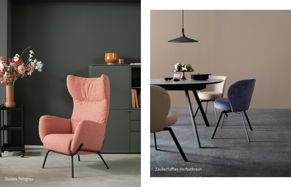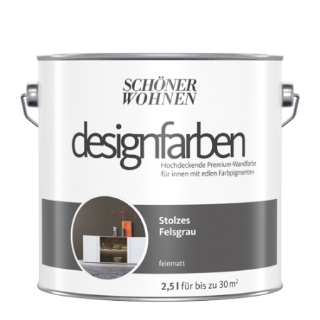 Für die Designfarbe Stolzes Felsgrau gilt: In der Ruhe liegt die Kraft. Mit zurückhaltendem Temperament hilft der Grauton Dir zum Beispiel dabei, Designelemente perfekt in Szene zu setzen.