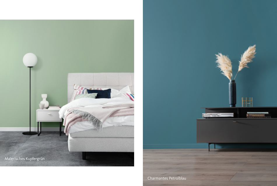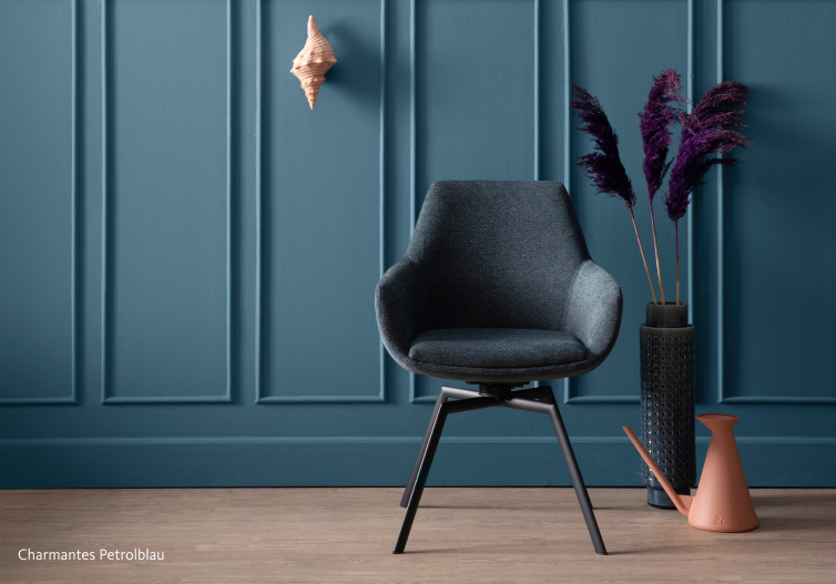 Blautöne wie unser Charmantes Petrolblau wirken leicht und entspannend – perfekt für Orte wie Arbeits- oder Schlafzimmer. Schenk Dir selbst eine Extraportion Gelassenheit.