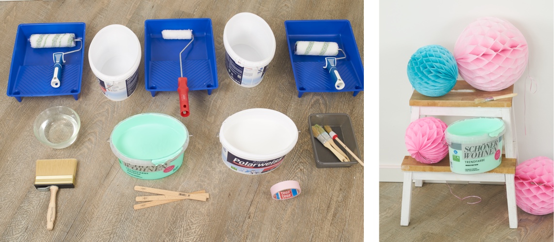 • weiße Wandfarbe (z. B. wie hier Polarweiss)