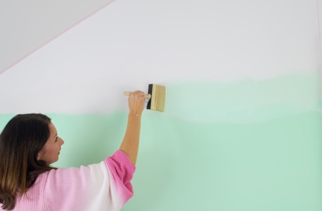 Streichen Sie das untere Drittel Ihrer Wand zunächst in der dunkelsten Variante des Basisfarbtons.