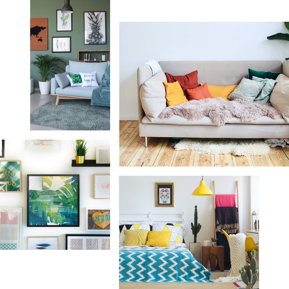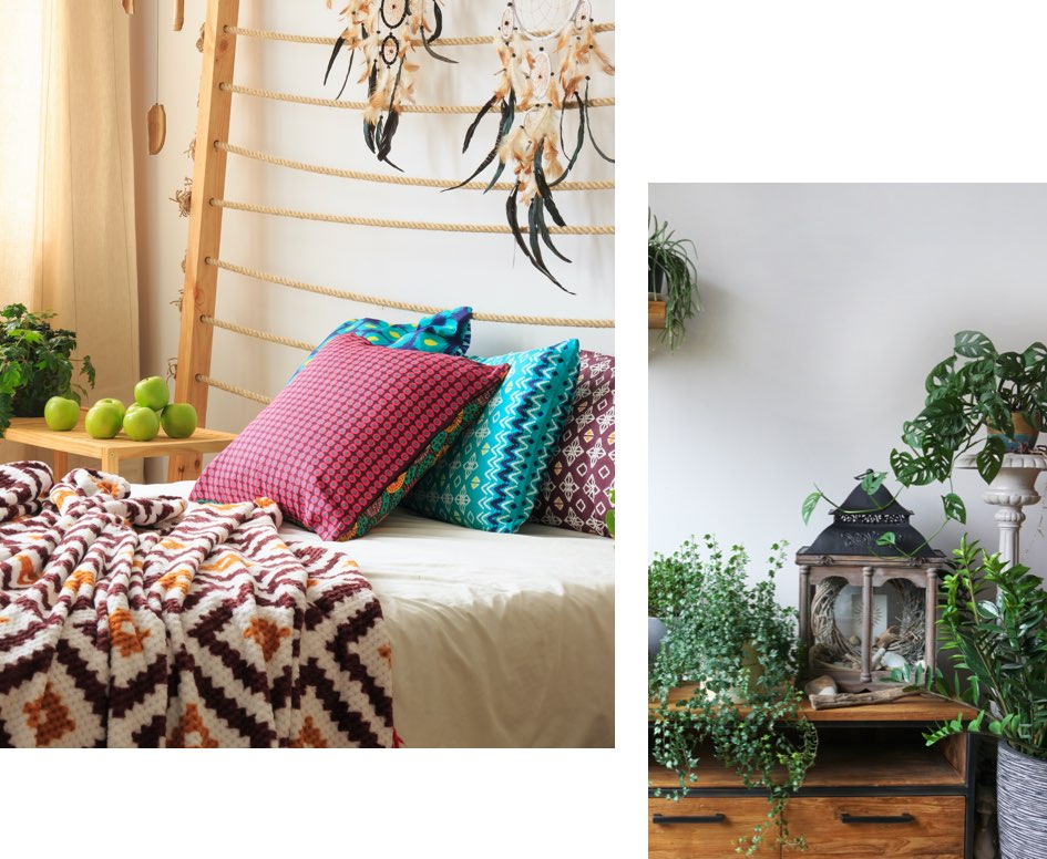 Sorgfältiges Auswählen und Spaß am Dekorieren sind also wichtig, wenn Du aus dem Vollen schöpfst. Um diesen Trend umzusetzen, braucht es Neugierde und eine gute Portion Kreativität, da Maximalismus weniger strenge Regeln als andere Trends vorgibt. Am Ende kommt es hauptsächlich auf Dein Gefühl an. Eine breite Palette an Farben, Mustern, Textilien, Pflanzen, Möbeln und Deko-Artikeln steht zur Auswahl. Was diese Elemente verbindet und zu einer stimmigen Einrichtung macht, ist Deine Persönlichkeit. Aber auch ein Farbthema verbindet Gegenstände aus verschiedenen Materialien oder mit kontrastreichen Texturen. Besonders in kleinen Räumen ist es wichtig, dass Du die Gesamtwirkung nicht aus den Augen lässt, damit die Einrichtung nicht willkürlich wirkt und visuell überfordert. Wenn Du nach und nach Dinge zur Einrichtung hinzufügst, ist es leichter, den Überblick zu behalten.