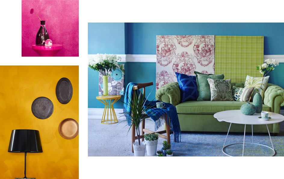 Bei der Gestaltung im Stil des Maximalismus hilft SCHÖNER WOHNEN-Farbe Dir mit passenden Produkten und inspirierenden Ideen. So kannst Du die Töne unserer Trendfarben untereinander sehr gut kombinieren und mit ihnen bunte Akzente setzen. Unter den Colour Stories findest Du viele Deko-Ideen, die sich ganz einfach umsetzen lassen. Für ausgefallene Effekte und eine Extraportion Glamour sieh Dir unbedingt auch die Trendstrukturen wie Glimmer- oder Metall-Optik an.