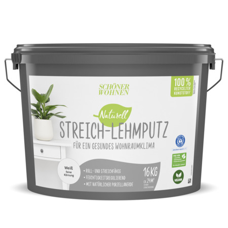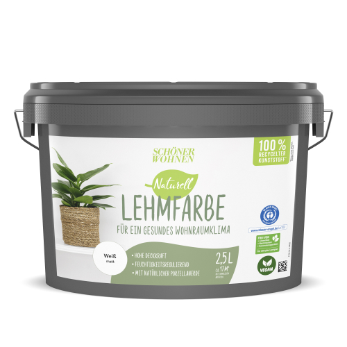 SCHÖNER WOHNEN Naturell Mineralfarbe ist eine weiße Wandfarbe auf natürlicher Silikatbasis. Sie sorgt für ein wohngesundes Umfeld – ganz ohne Konservierungsmittel und gesundheitsschädliche Weichmacher oder Emissionen. Ein weiterer Vorteil: Wandfarbe auf Silikatbasis ist „diffusionsoffen“, d. h. die Wände können auch nach dem Streichen atmen und lassen Wasserdampf durch. Die Feuchtigkeit in der Raumluft wird so auf natürliche Weise reguliert. Das Ergebnis ist ein besonders angenehmes Raumklima und ein geringeres Risiko von Schimmelbefall. Du magst es bunt? Dann kannst Du Dir SCHÖNER WOHNEN Wohlfühlweiss, eine weitere Mineralfarbe von SCHÖNER WOHNEN-Farbe, in Deinem Wunschfarbton anmischen lassen.