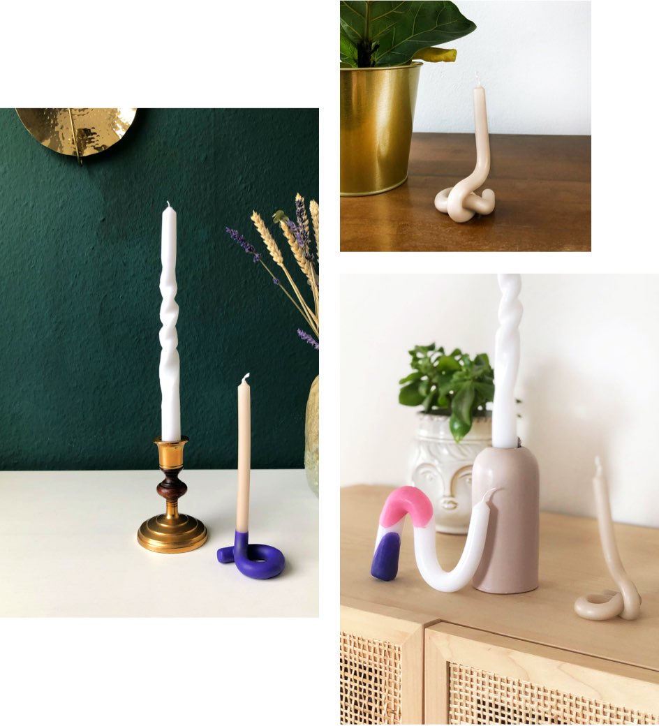 Sculptural und Twisted Candles in bunten, pastelligen Tönen sind momentan extrem angesagt. Die meisten dieser Trendkerzen werden aus unparfümiertem Wachs hergestellt. Was Formen und Farben angeht, ist die Auswahl riesig.