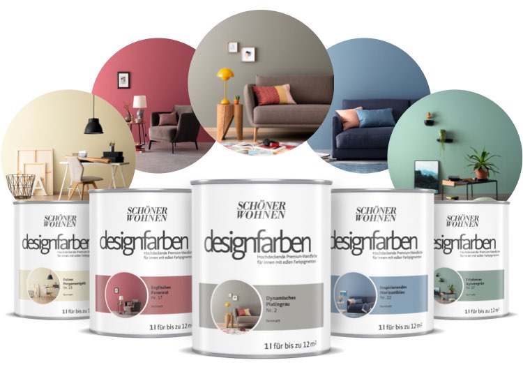 Jeder einzelne Ton aus der SCHÖNER WOHNEN Designfarben-Kollektion überzeugt durch Persönlichkeit und eine unnachahmliche Eleganz. Dabei sind aber alle Farben harmonisch aufeinander abgestimmt und lassen sich miteinander kombinieren. Neu sind die beiden Größen 100 ml und 1 Liter. Die 100-ml-Dosen sind perfekt, um die einzigartige Vielfalt des ausgewählten Farbspektrums kennenzulernen und zu Hause auszuprobieren. Teste Deinen Lieblingston, damit Du ganz sicher bist, dass er Dir gefällt. Die 1-Liter-Dosen sind super für individuelle Akzentspielereien. Willst Du eine Wand lieber vollflächig streichen, dann steht Dir natürlich weiterhin die klassische 2,5-Liter-Dose zur Verfügung.