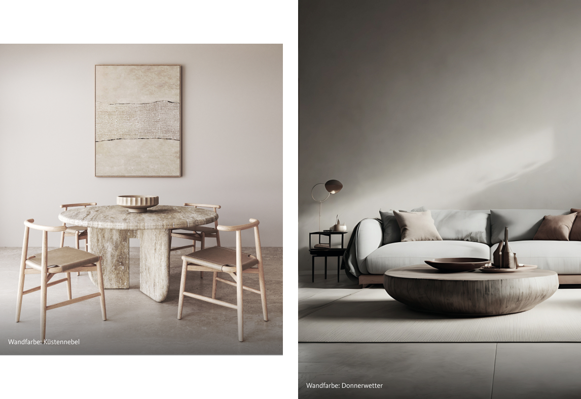 Japandi kombiniert das Beste aus skandinavischer Reduktion aufs Wesentliche und japanischer Raffinesse und Liebe zum Detail. Neutrale und dunkle Farbtöne sowie hochwertige Materialien sind darum charakteristisch für diesen Stil. Perfekt ist zum Beispiel das Graubeige unserer Naturell Kreidefarbe Küstennebel in Kombination mit Donnerwetter. Dabei sucht er die Balance zwischen Funktionalität und einer natürlichen Unvollkommenheit. So schafft Japandi ein ausbalanciertes Wohngefühl.