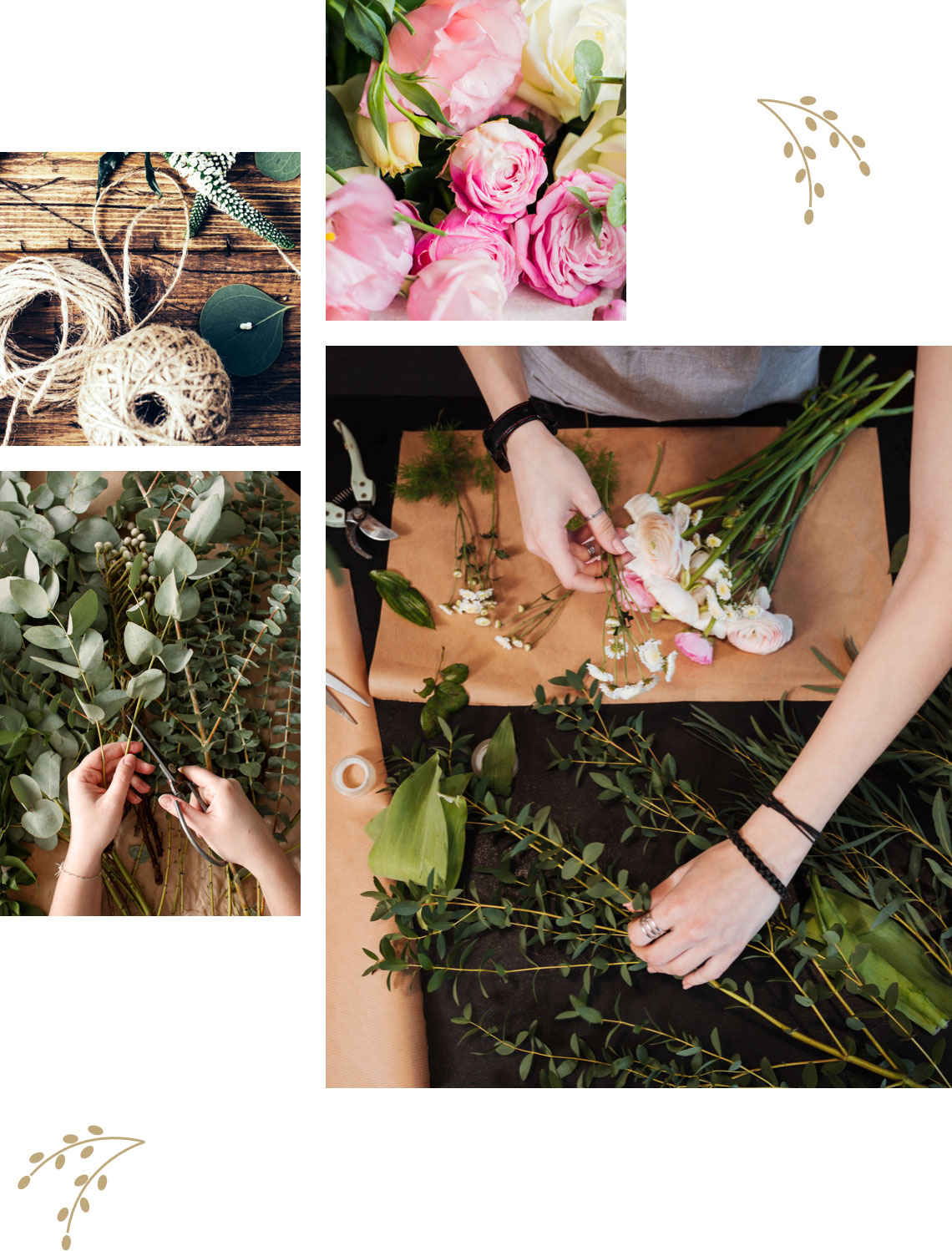 Als grünes Beiwerk eignen sich Eukalyptus, Farn oder großblättriges Grün wie Monstera und Salal. Im April gibt es auch das hübsche Schleierkraut in Weiß und Rosa, sowie Schneebälle mit ihrem intensiven Hellgrün. Frische Birken- oder Haselzweige passen besonders gut zum Osterfest.