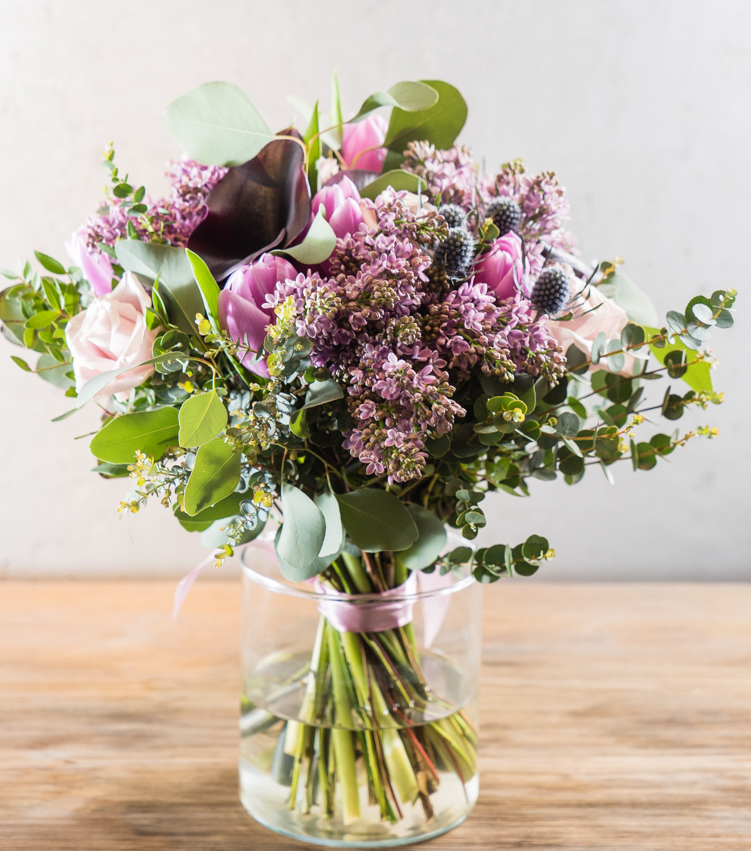 Für ein lebendiges Arrangement empfehlen wir Ihnen, Blumen mit hartem Stängel und solche mit weichem Stängel zu mischen. Kombinieren Sie pastellige mit dunklen Farben und auch lang- und kurzstielige Blumen für einen natürlichen Look. Mit etwas Grün verleihen Sie Ihrem Bouquet anschließend Volumen.