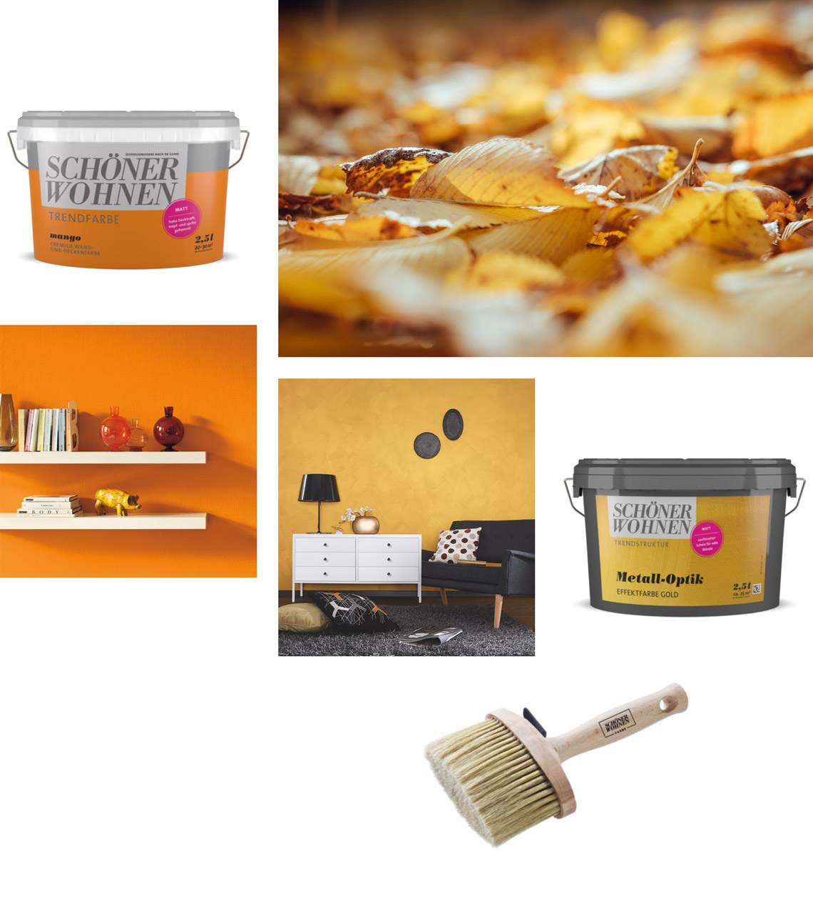 SCHÖNER WOHNEN-Farbe bietet viele trendige Gelbtöne, mit denen Sie Ihre Wände wunderbar gestalten können. Die Trendfarbe Honey beispielsweise ist ein üppiges Gelb, das besonders gut mit Weißtönen oder Holz- und Naturfarben harmoniert. Das Orange des Farbtons Mango fängt die Wärme der tief stehenden Sonne ein. Die ansteckende Energie dieser Trendfarbe sorgt so selbst bei herbstlichem Regenwetter für Fröhlichkeit.